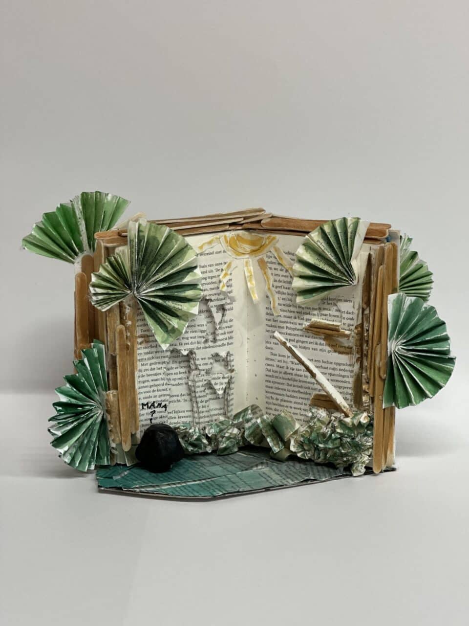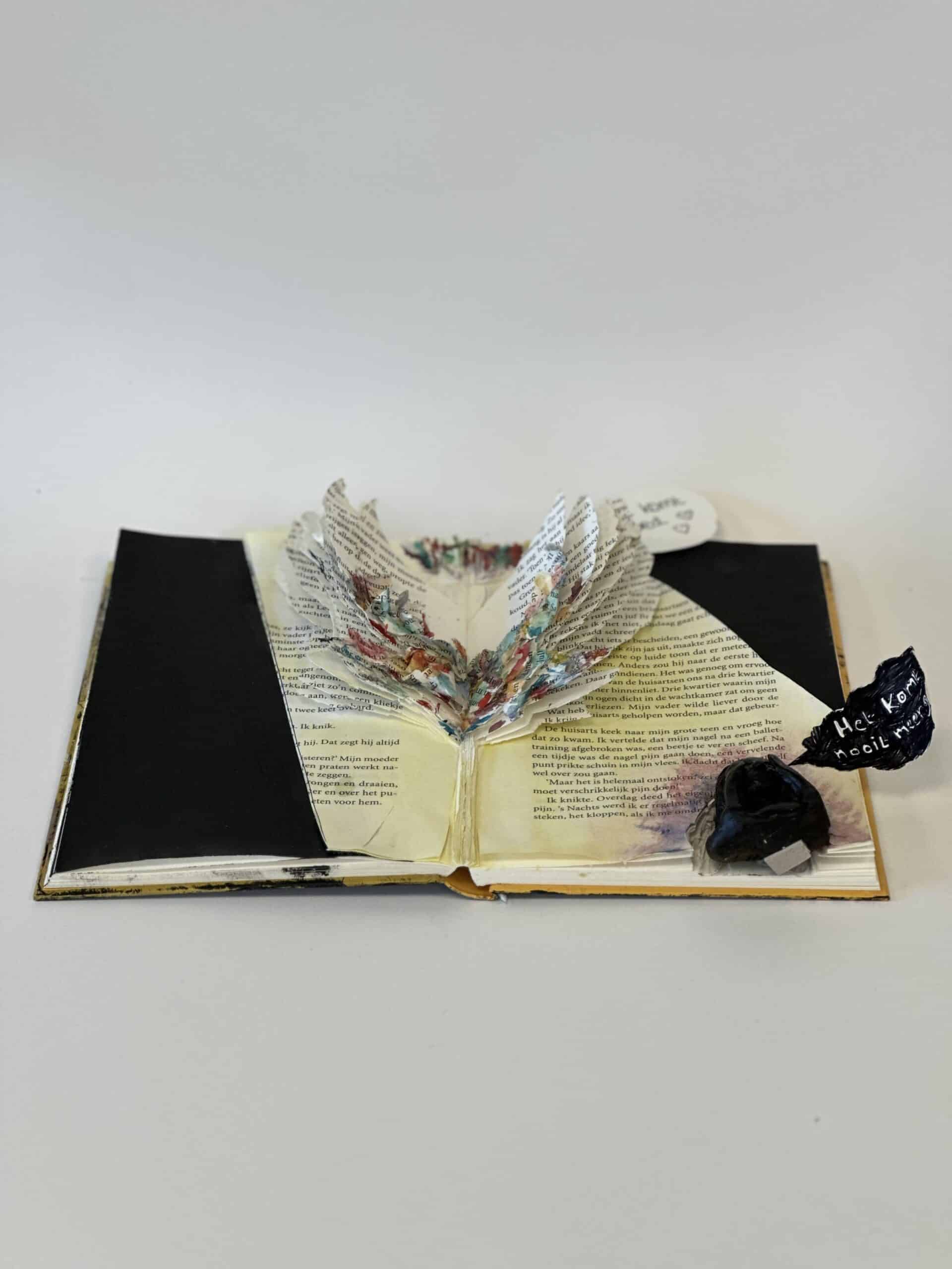 Hoe geef je een oud boek een tweede leven? De leerlingen van 3-havo lieten bij het vak Beeldend Vormen hun creativiteit de vrije loop – met toffe resultaten! Elk boek werd getransformeerd tot een kunstwerk waarin het verhaal letterlijk tot leven komt.