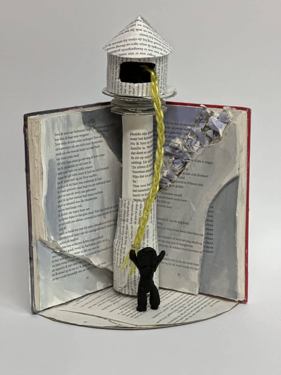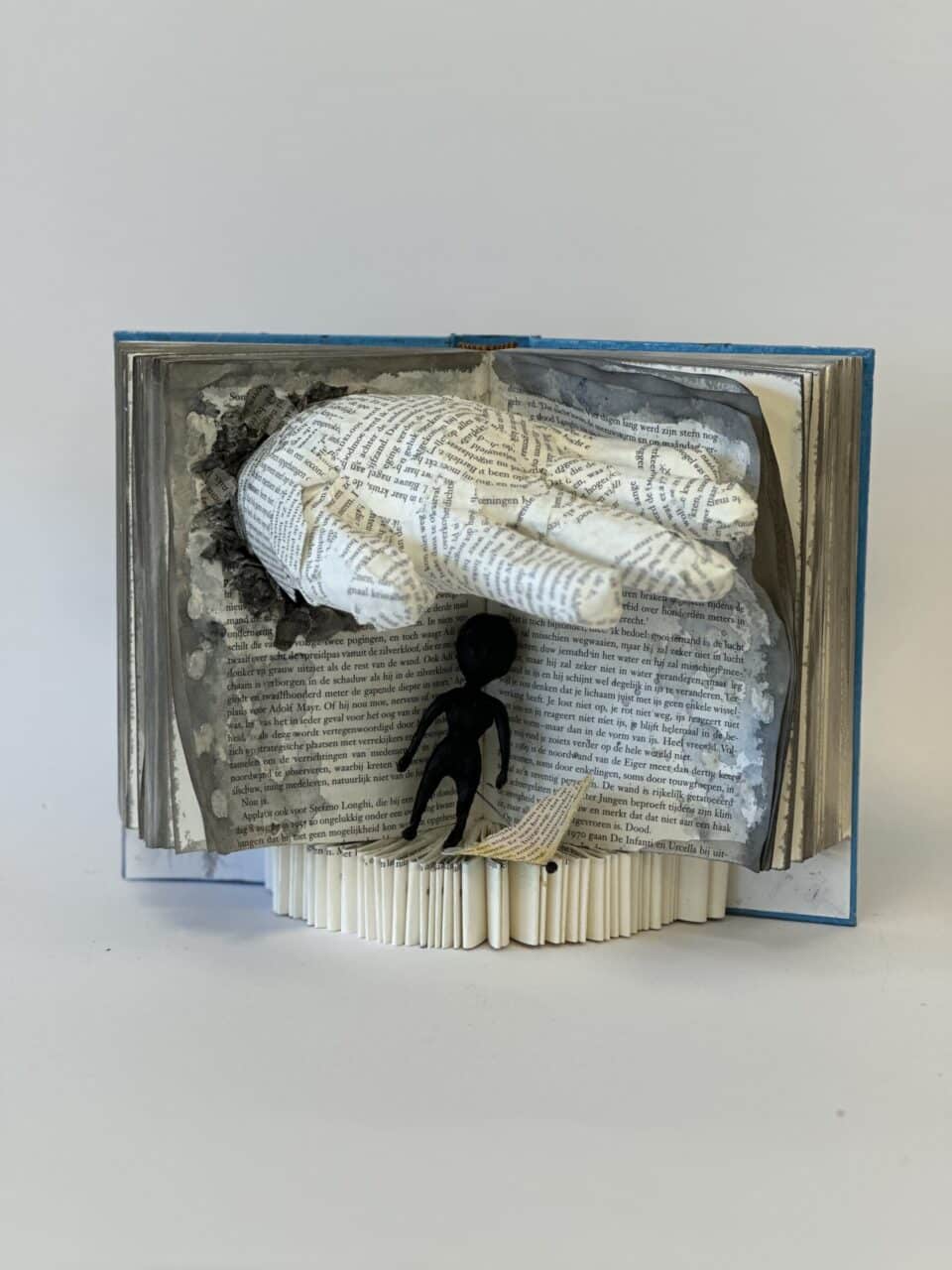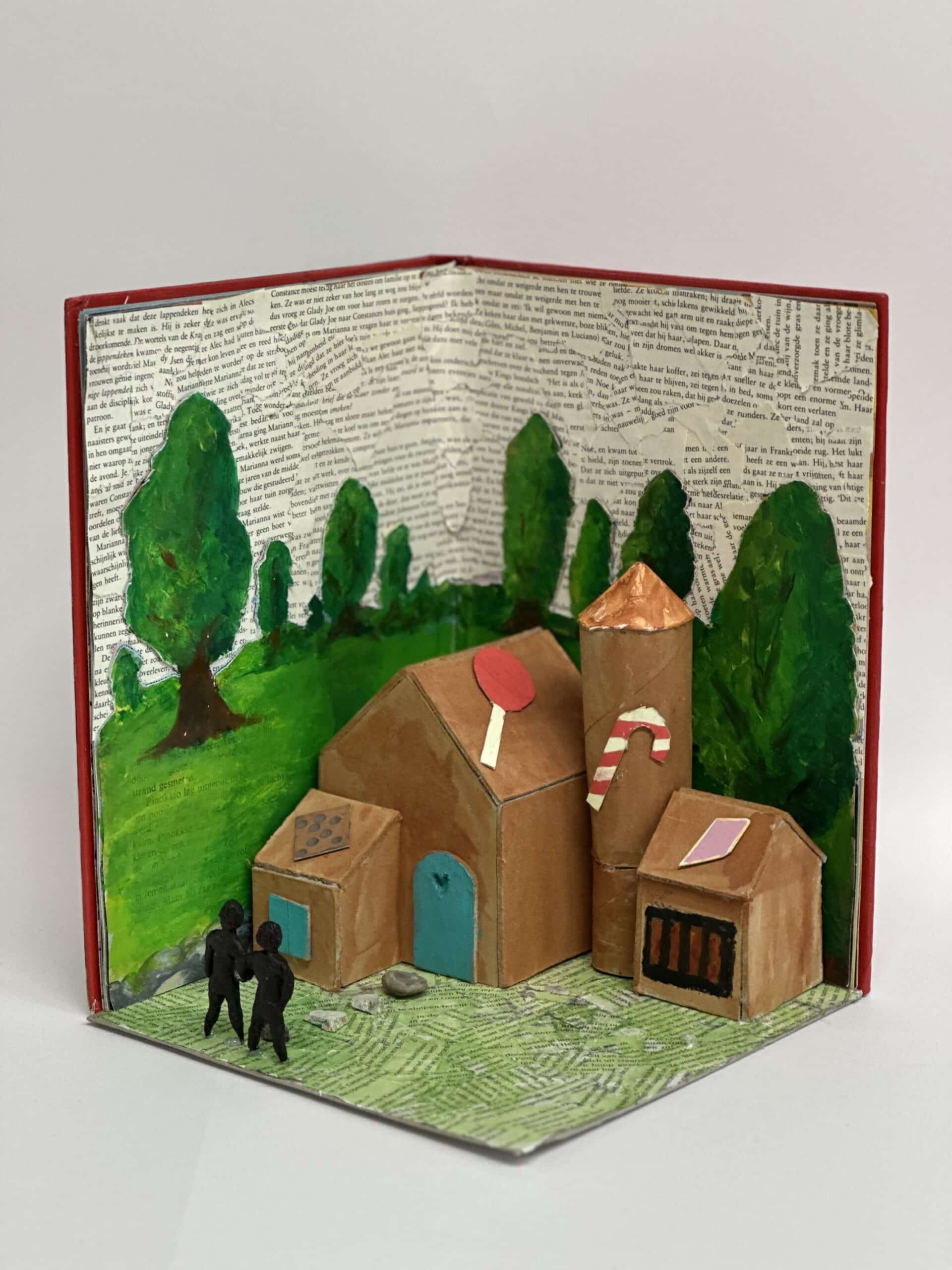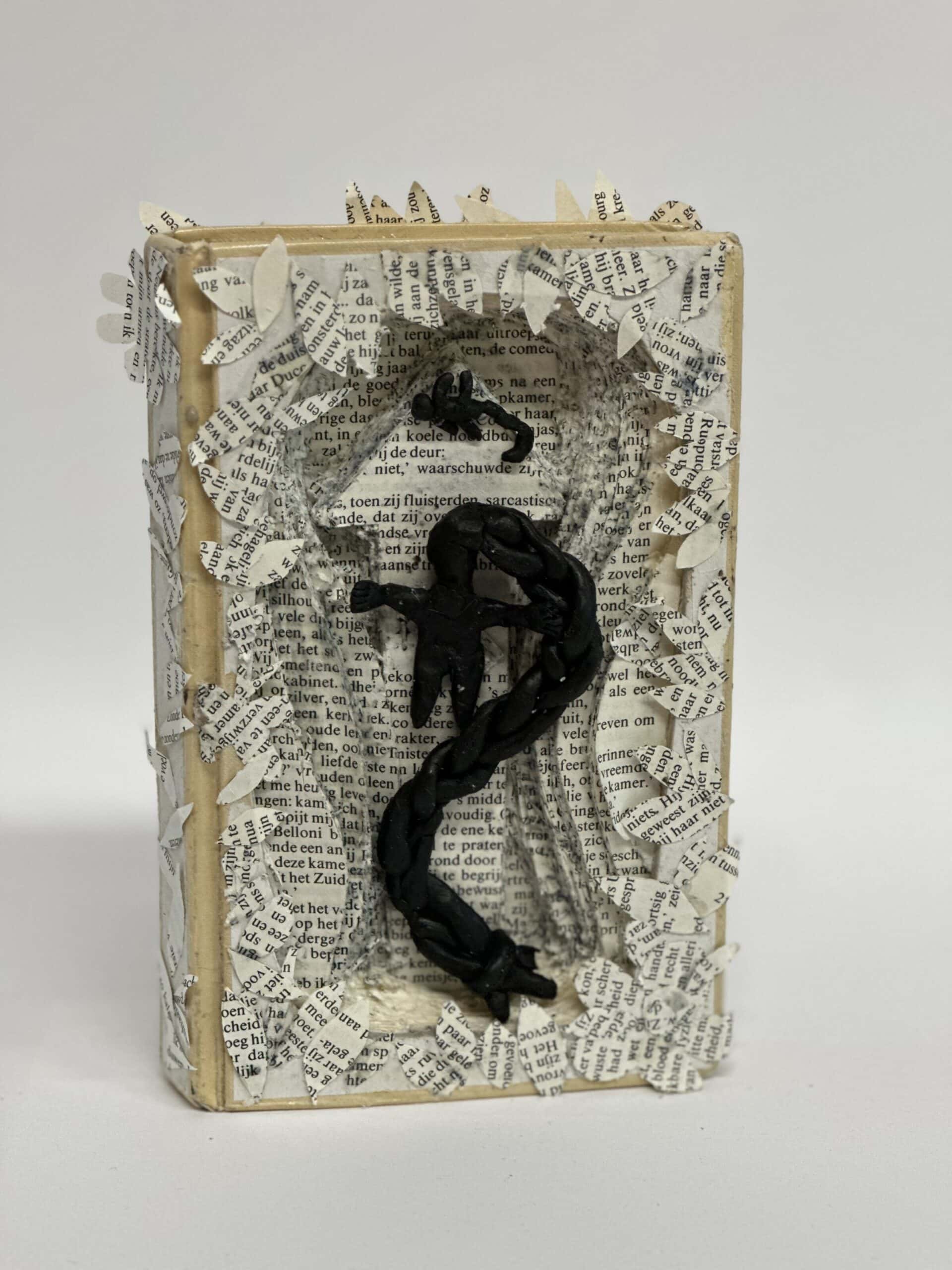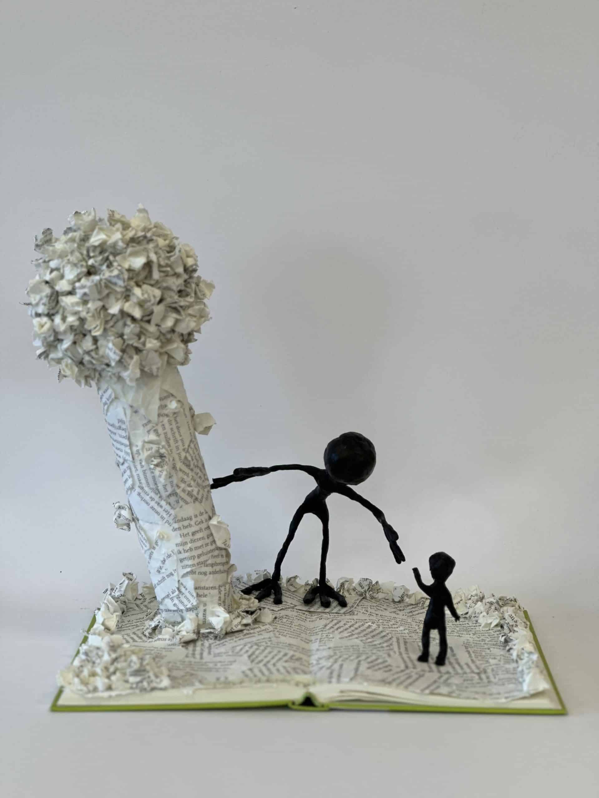 In hun kunstwerk vormt het boek niet alleen het decor, maar speelt het ook de hoofdrol. Een belangrijk personage uit het verhaal is uitgebeeld in was. Dit zorgt voor een bijzonder en tastbaar effect.