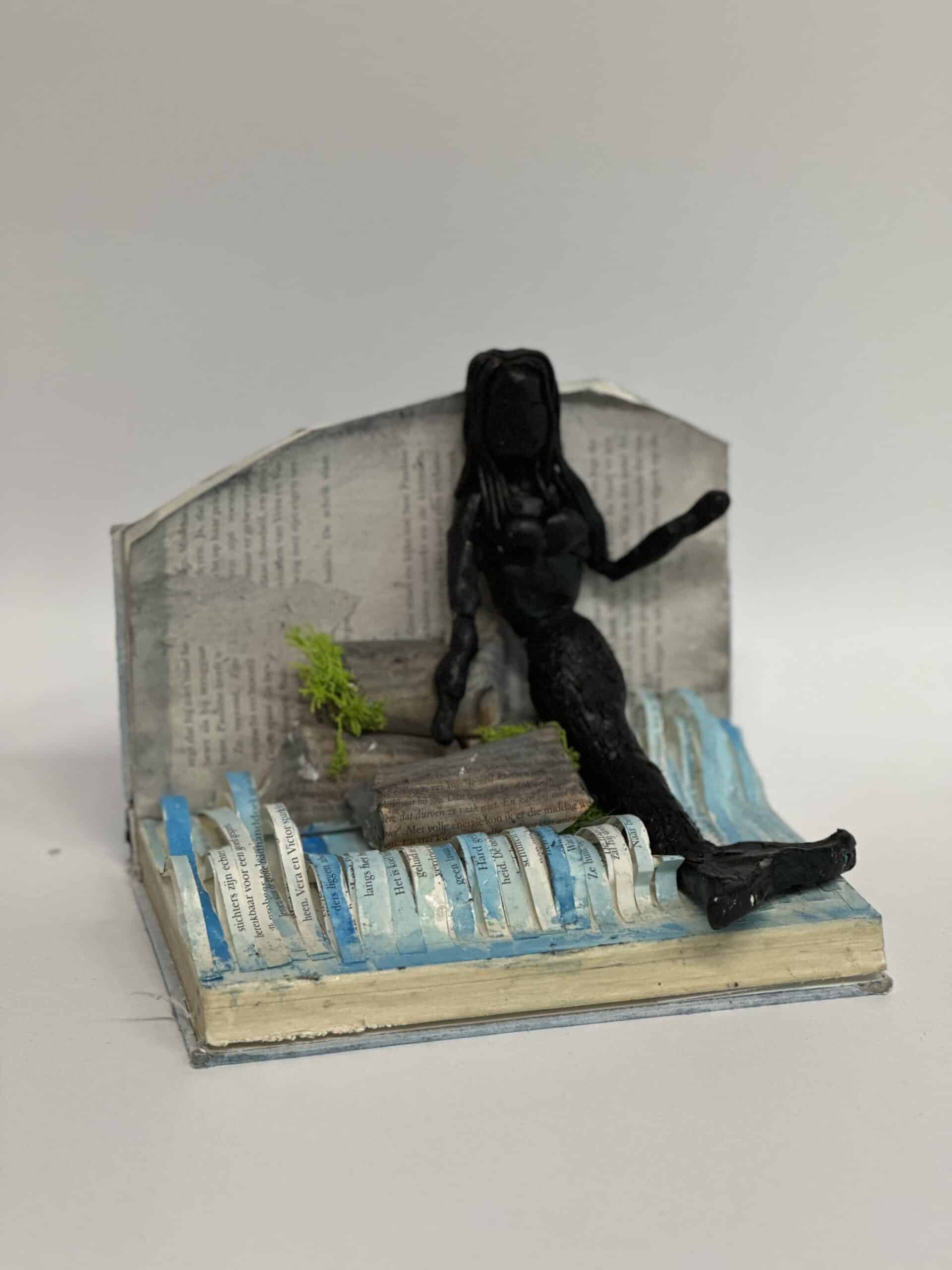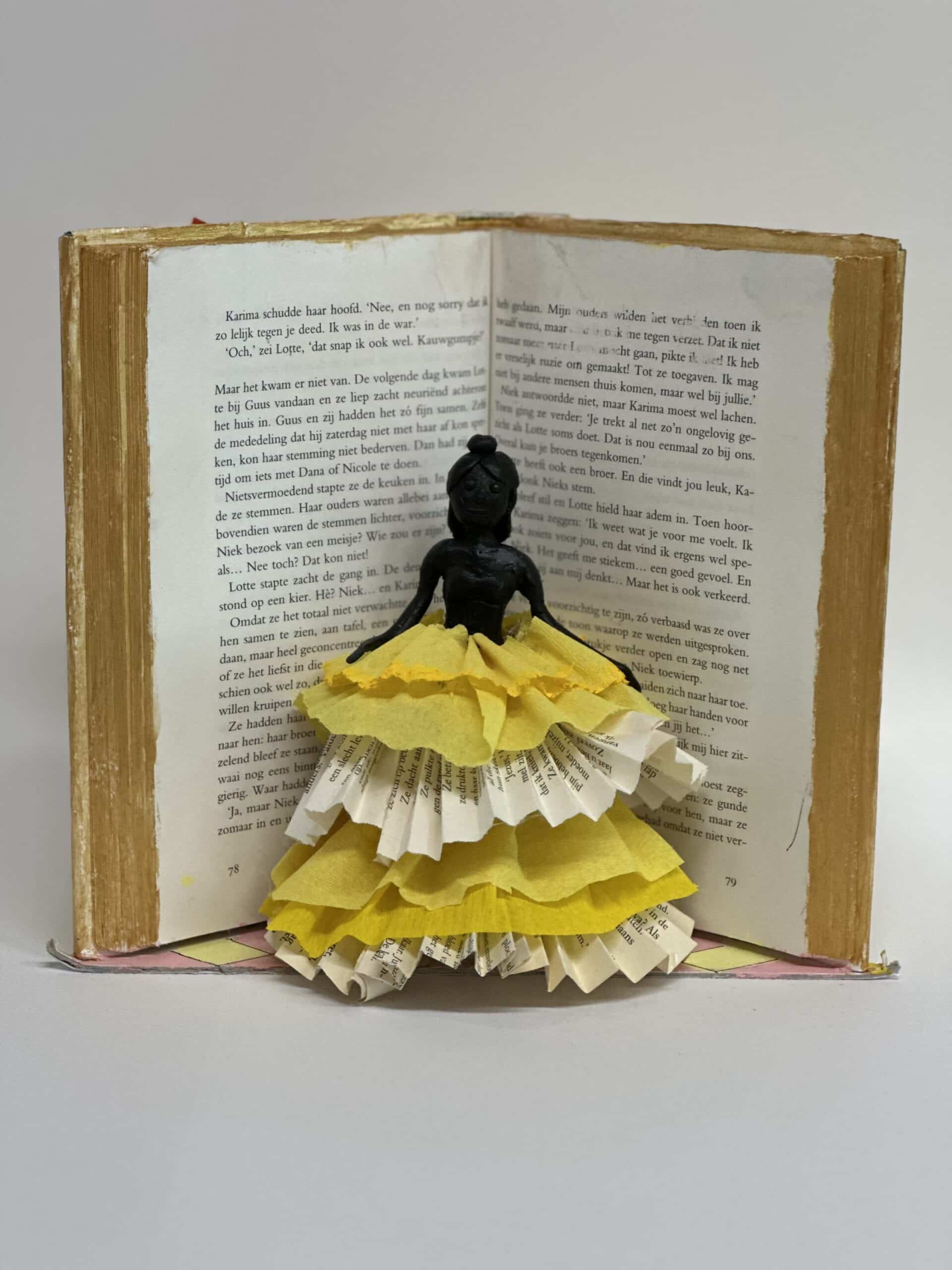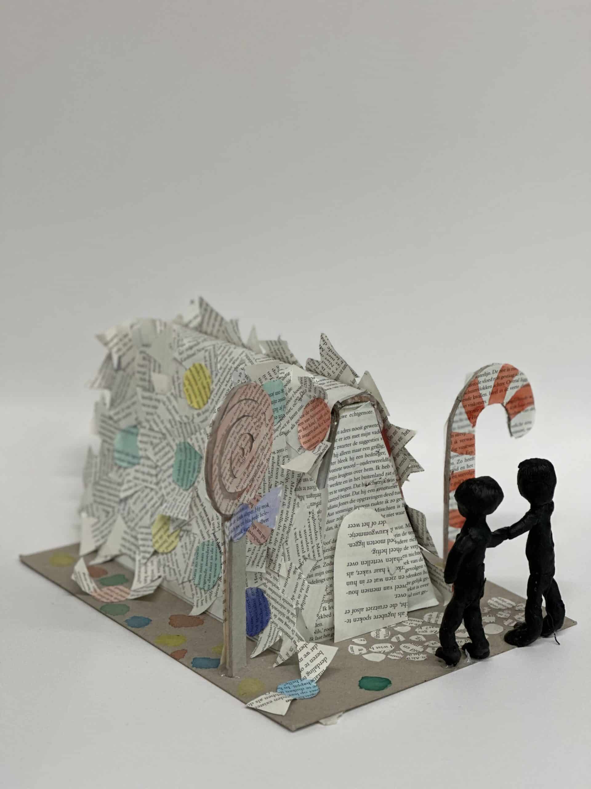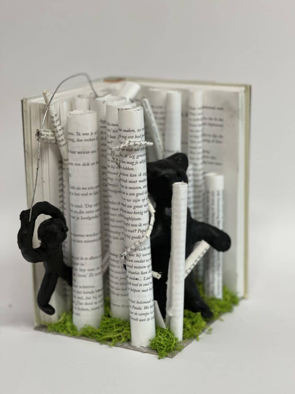 In hun kunstwerk vormt het boek niet alleen het decor, maar speelt het ook de hoofdrol. Een belangrijk personage uit het verhaal is uitgebeeld in was. Dit zorgt voor een bijzonder en tastbaar effect.