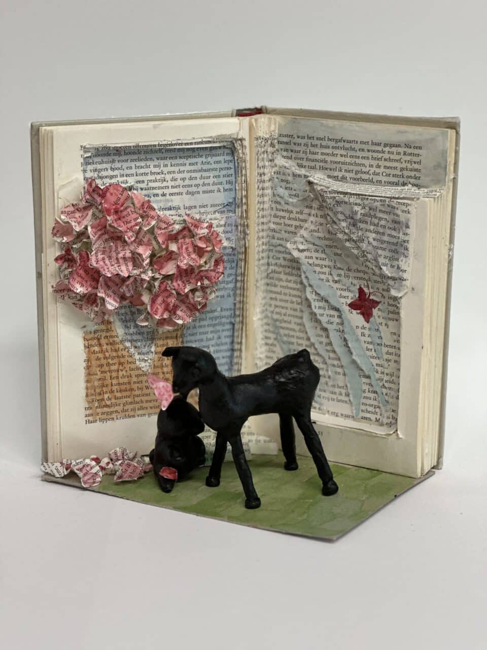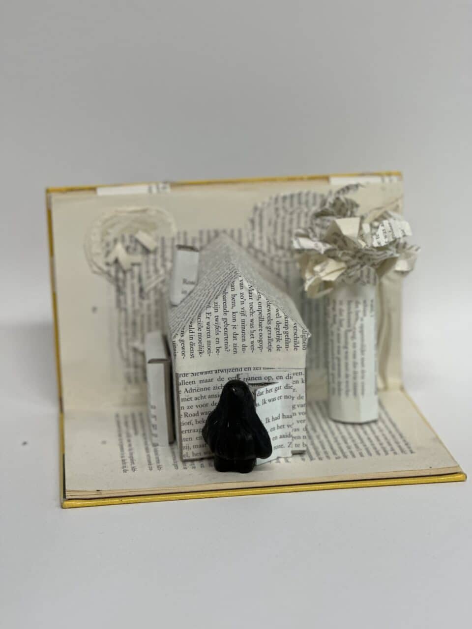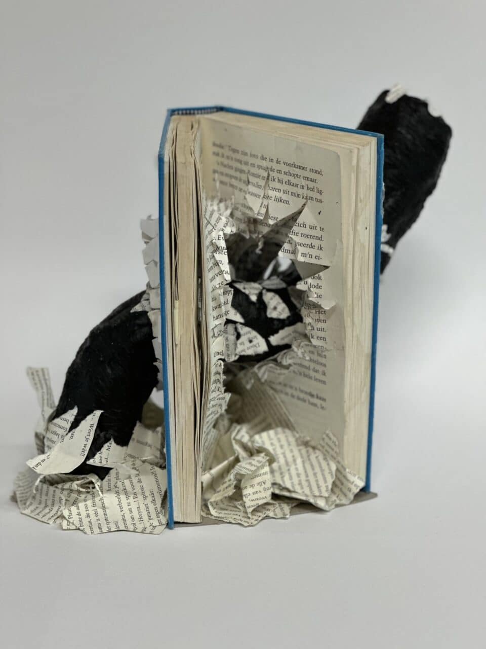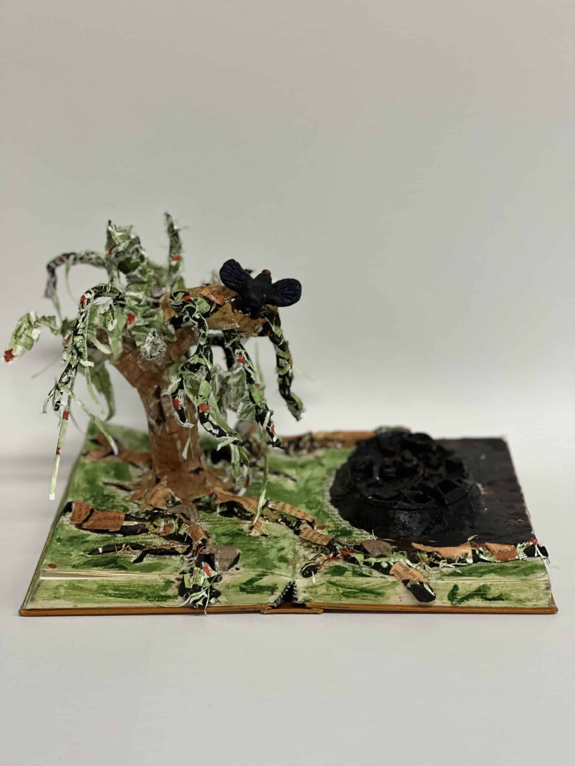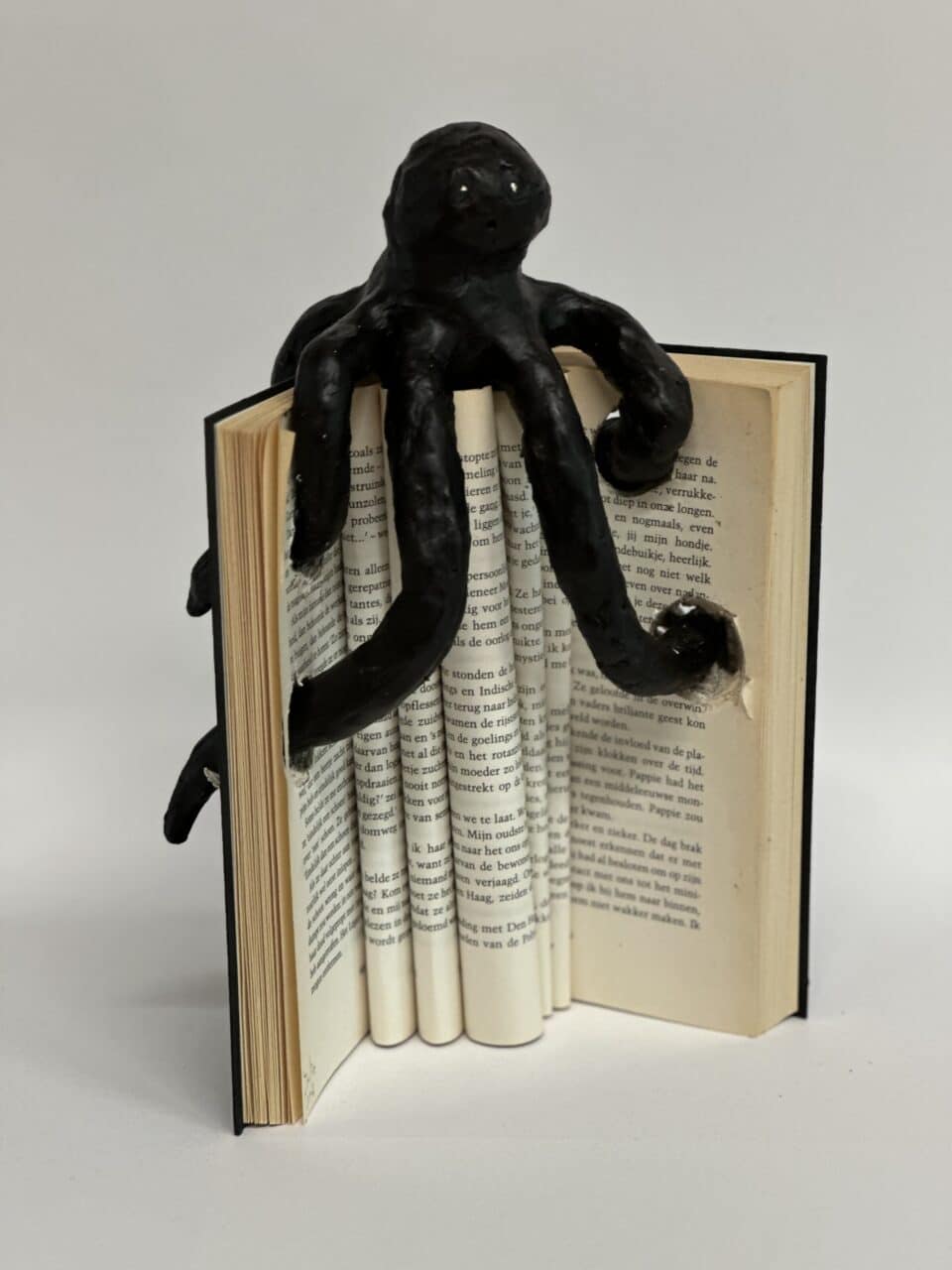 In hun kunstwerk vormt het boek niet alleen het decor, maar speelt het ook de hoofdrol. Een belangrijk personage uit het verhaal is uitgebeeld in was. Dit zorgt voor een bijzonder en tastbaar effect.